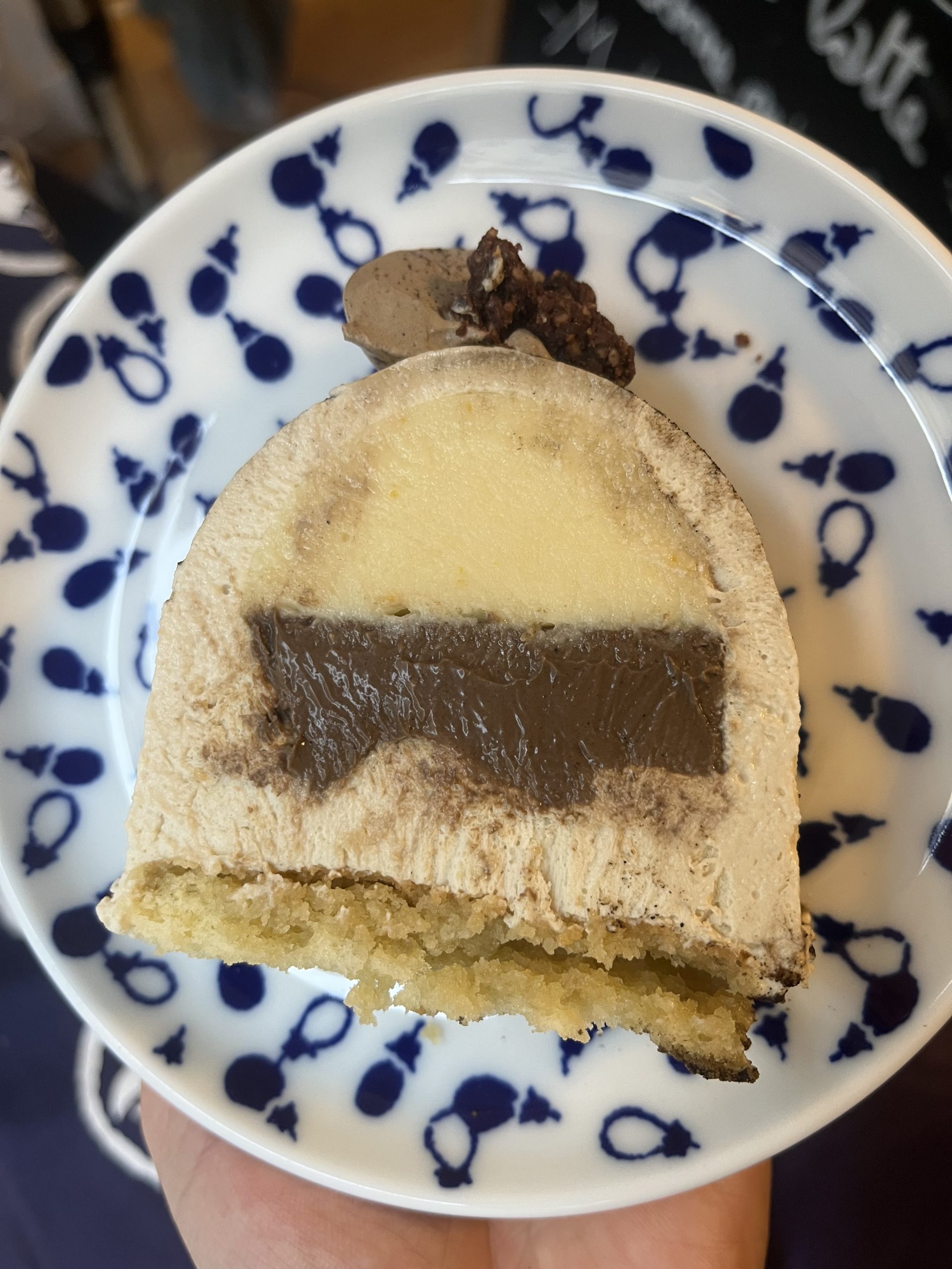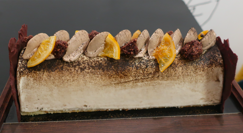 Une mousse au thé hojicha : torréfié et légèrement grillé, ce thé japonais apporte une touche umami et réconfortante, parfaite pour les fêtes. Une saveur rare et sophistiquée qui surprend et séduit. Retrouvez un coeur en deux parties: une orange doucement acidulé, et une ganache chocolat au lait : Onctueux et gourmand, il enveloppe le tout d’une douceur familière, pour un contraste parfait avec les notes torréfiées du thé.ce côté fondant s’harmonisent avec le Hojicha pour un équilibre subtil entre amertume et douceur.